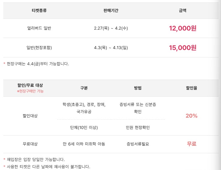 - 일반 관람: 4월 4일(금) ~ 4월 13일(일)